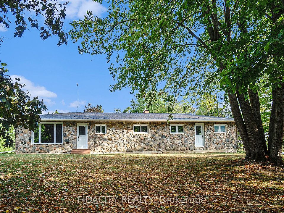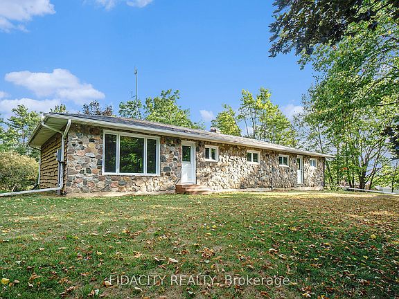 Welcome to 1910 Beach Road a raised bungalow on just under 2 acres, offering endless potential for multi-generational living (in-law suite potential), contractors, or a home-based business. Built into a hill with a stone front and wood siding, this home has charm, privacy, and no rear neighbours just peaceful farmland views.The main level features 3 bedrooms, an updated kitchen with island, dining area, and living room. From the kitchen, step onto a large deck overlooking the stunning yard the perfect spot for morning coffee or entertaining with a view. The main bathroom offers a soaker tub and room to add a glass shower. Off the main floor, a large unfinished insulated area with its own entry is ready to become an apartment, in-law suite, or studio. The walkout lower level already has a kitchen, bathroom, and wood fireplace, offering independent living space.Outside, you will find 2 large decks, a she-shed with loft, multiple outbuildings, an oversized garage, a huge bonfire pit, and an impressive decked-in 10,000-gallon pond system with pumps and filters included. Parking is abundant, perfect for trailers, ATVs, boats, or work vehicles.Major updates include: Verdun windows (2014), new wood-stove & chimney (2024), steel roof, on-demand heat, propane, excavated and wrapped foundation (2021), recent septic service, and fibre optic internet capability. The property is landscaped with mature trees, hundreds of hostas, and perennials, making the yard absolutely stunning. With potential for 2-5 bedrooms, 3 separate living spaces, and room for contractors or DIYers to finish projects with materials already on site, this is a rare opportunity. Conveniently located minutes from Hwy 44/416, just 30 minutes to Ottawa, Brockville, or Smiths Falls, this versatile property offers space, updates, and opportunity all in one package. (Sold AS IS)