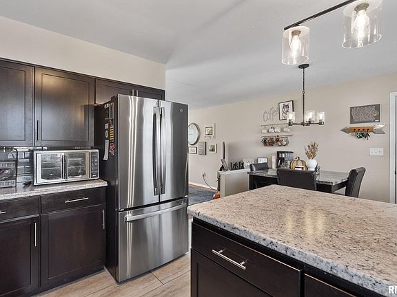 Move-in ready 4-bedroom, 2-bathroom Bettendorf home with over 2,000 square feet finished! Oversized 2-car attached garage. Spacious corner lot with 2 separate fenced-in yard portions & lovely patio with pergola! Updated eat-in kitchen with breakfast bar, all appliances stay! 3 nice-sized bedrooms on the main level. The finished lower level has a large rec room with daylight windows, 4th bedroom, 2nd updated full bathroom, and a large laundry area with extra storage & a nice countertop for folding. New roof & siding 2020. Replacement windows throughout. Convenient location near schools, parks, shopping, and interstate access!