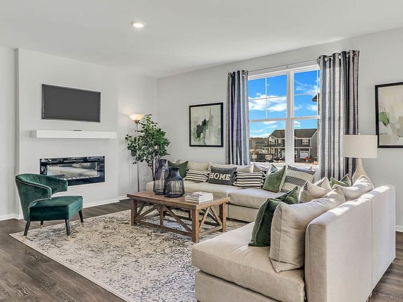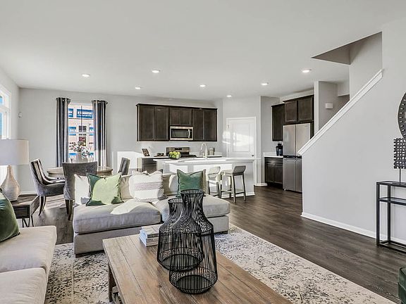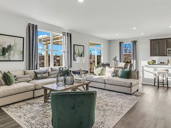 Imagine yourself at 1910 Canyon Creek Dr. in Aurora, Illinois, a beautiful new home in our Wheatland Crossing community. This home will be ready for an August move-in! This large, scenic homesite includes a front porch with brick facing surrounding the garage and fully sodded yard. This Henley plan offers 2,600 square feet of living space with a flex room, 4 bedrooms, 2.5 baths, 9-foot ceilings on first floor, and full basement. Entertaining will be easy in this open-concept kitchen and family room layout with a large island with an overhang for stools with shaker cabinetry. Additionally, the kitchen features a walk-in pantry, modern stainless-steel appliances, quartz countertops, and easy-to-maintain luxury vinyl plank flooring. More flexible space is waiting upstairs in the 2nd-floor loft, offering unlimited potential to suit your needs. Enjoy your private getaway with your large primary bedroom and en suite bathroom with a raised height dual sink, quartz top vanity, and walk-in shower with chic wall surrounds and decorative glass shower doors. Convenient walk-in laundry room, 3 additional bedrooms with a full second bath and a linen closet complete the second floor. All Chicago homes include our America's Smart Home Technology, featuring a smart video doorbell, smart Honeywell thermostat, smart door lock, Deako smart light switches and more. Photos are of similar home and model home. Actual home built may vary.