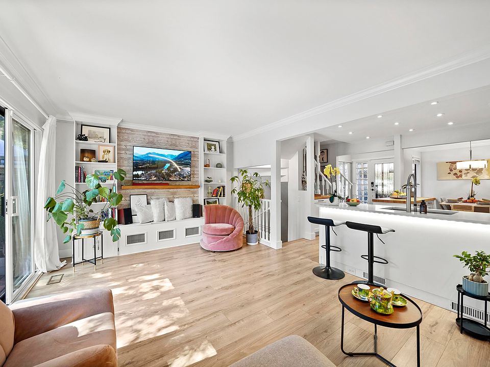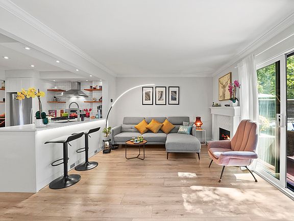 Welcome to your new home — where the comfort of a detached house meets low maintenance townhome with modern finishing! Nestled in a quiet, tree-lined community, this SE-facing home offers privacy, space & a seamless indoor-outdoor lifestyle w/ newly painted 325sqft patio. Enter from your front porch by the carport w/ overhead storage, or through your private gate. The open-concept chef’s kitchen features Caesarstone quartz counters, s/s appliances, gas stove, & a centre island perfect for entertaining or a growing family. Upstairs boasts 3 beds incl a spacious primary w/ custom closets & renovated bath. The lower level offers a family room, den/4th bedroom, laundry, & extra storage. Close to parks, schools, shops, rec centre, transit, & trails—this home is West Coast living at its best!