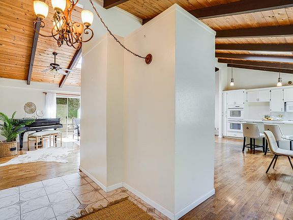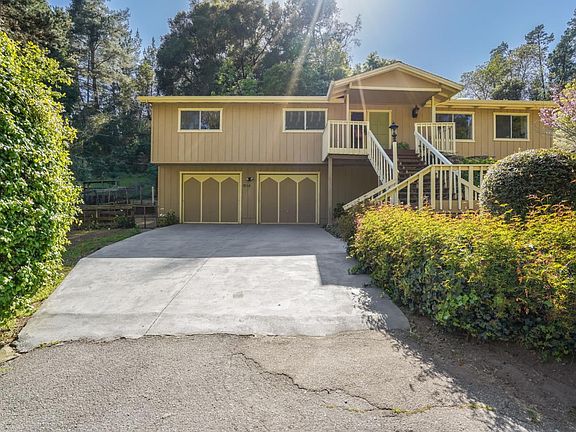 Peaceful Aptos home located on Day Valley Road on over 1 sunny acre. Spacious home with 4 bedrooms and 3 full bathrooms plus bonus room that would be a great office. Upstairs you have the kitchen and living areas, 3 bedrooms including a master and 2 bathrooms. Downstairs there is a large room that could be used as a separate unit with it's own exterior entrance, full bathroom and the bonus room. The kitchen has been recently refreshed with quartz countertops and painted cabinets. Other features include: vaulted ceilings, wood burning fireplace in the living room, skylights, wood floors, new carpet, double sink vanities. The property has tons of room for extra vehicles/RV parking and there is an attached 2 car garage. You will find many different areas to enjoy the outdoors & sun to entertain and grow your veggies. Welcome Home!