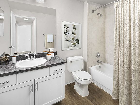 - Exterior features: , 24-hour emergency maintenance, 9-foot ceilings, Accessible, Assigned and attached garages, Attached & Detached Garages, Balcony, Barbecue, Brushed nickel hardware, Business Center, Detached storage, Double-sink vanity, Dual pane windows, Flex space, Game Room, Garbage included in rent, Garden, Gray granite countertops, Hallway storage, Internet included in rent, Jacuzzi, Mantel, Online Maintenance Requests, Online Rent Payment, Parking, Pet Park, Private entry, Sleek white shaker cabinets, Stainless appliances, TV Lounge, Undermount kitchen sink, White tile backsplash, Wi-Fi in common areas, Wood-style flooring, Wood-style flooring throughout