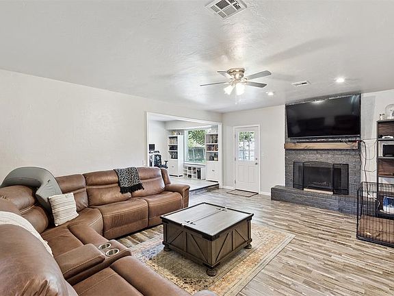 This sweet home in Country Club Terrace has Vinyl Floors throughout. Large Living Room with Wood Burning Fireplace. Kitchen with Granite Counters, Stainless Steel Appliances including Refrigerator, and an open Dining. Walk through Laundry with Washer and Dryer lead to Garage. Huge Primary Bedroom with Walk In Closet and updated Primary Bathroom. Both secondary Bedrooms are spacious with Walk In Closets. Updated Windows, HVAC and Hot Water Tank. Big Fenced Backyard.