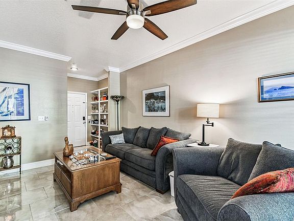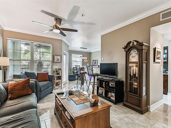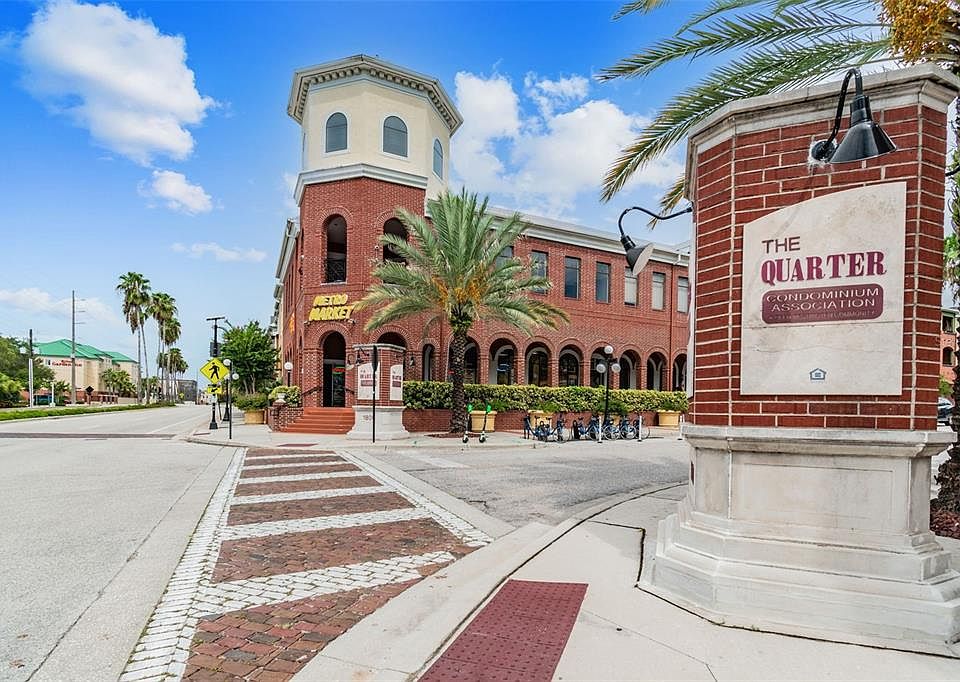 **Welcome to Unit 10104** Located in the heart of Tampa within The Quarter at Ybor…A RESORT STYLE COMMUNITY and you don’t want to miss this unique unit!! This FULLY REMODELED, FIRST-FLOOR CONDO offers rare POOL VIEWS and a PRIVATE COVERED PATIO complete with a roll-down shade for privacy. Inside, you’ll notice thoughtful upgrades throughout—CROWN MOLDING, STAGGERED TILE FLOORS throughout, TALL BASEBOARDS, and a warm neutral color palette. The entryway includes CUSTOM WOOD SHELVING, while the KITCHEN features ALL-WOOD CABINETRY with frosted glass accents, GRANITE COUNTERTOPS, STAINLESS STEEL APPLIANCES, UNDERMOUNT SINK, and a BREAKFAST BAR. Elegant GLASS PENDANT LIGHTING highlights the dining space, which gives direct access to the patio. The LAUNDRY ROOM is impressively outfitted with upper and lower cabinetry, GRANITE COUNTERS, and a WASHER AND DRYER. The PRIMARY SUITE includes a cozy sitting nook, a WALK-IN CLOSET WITH CUSTOM BUILT-INS, and a beautifully renovated EN-SUITE BATH featuring a GRANITE DOUBLE VANITY, FRAMELESS GLASS WALK-IN SHOWER, and FLOOR-TO-CEILING TILE with designer accents and niches. The GUEST BEDROOM also offers pool views, a ceiling fan, and another CUSTOM WALK-IN CLOSET. The GUEST BATH mirrors the quality finishes of the rest of the home, with a GRANITE-TOPPED VANITY and a fully tiled TUB/SHOWER COMBO. Located IN THE QUARTER AT YBOR, in the heart of Historic Ybor City. The community has two pools, a spa, a pool table, charcoal grills, multiple courtyards, walking trails, a private movie theatre, a 24-hour fitness center, and a market store. Walking distance to restaurants, bars, breweries, art galleries, Saturday farmer's market, and shopping on 7th Ave. Two blocks from the Free trolley to Channelside, downtown, hockey arena, and Riverwalk, 20 minutes to Tampa International Airport Every inch of this condo has been carefully upgraded—A RARE FIND IN THE QUARTER AT YBOR.