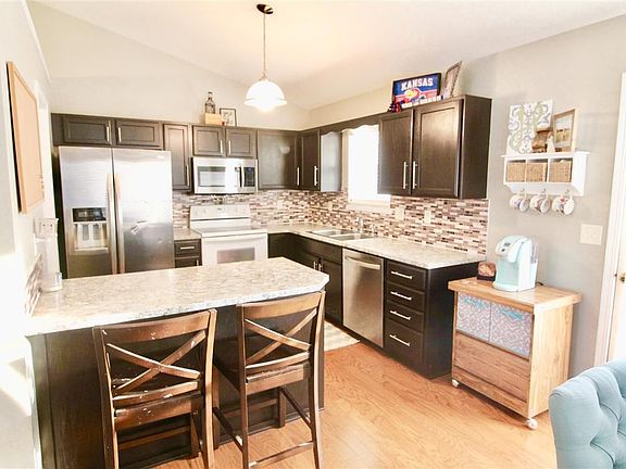 Fantastic home with beautiful updates to the kitchen and bathrooms. This is a popular floor plan with 3 bedrooms, 2 bathrooms, 2 car garage, vaulted ceilings, hardwood floors in kitchen and dining, privacy fenced yard on a cul-de-sac lot. Kitchen has been updated with darker stain to the cabinets, new cabinet and drawer handles, countertops and backsplash. A microwave was added over the stove and vented by electrician. All kitchen appliances stay and the disposal is new. Lots of cooking and storage space in this kitchen and boasts a large peninsula eating bar. Dining is set off the kitchen surrounded by the bay window. Living room, kitchen and dining all share a vaulted ceiling. Master bedroom has 2 windows and a walk in closet. A 2nd bedroom is on the main floor. Main floor bathroom also has been updated with darker stain cabinets, countertops, mirror and light fixtures. Main floor laundry room with shelves and hanging racks. All the baseboards and doors have been painted white and hardware changed to brushed nickel. Interior paint is neutral grays and beige. Full finished basement has 2 rooms that blend together for family rooms, a 3rd bedroom and a 2nd bathroom. Carpet in the home is newer. Back yard is quiet, with stamped concrete patio out the back door. Storage shed stays. Amazing home in Goddard Eisenhower schools! The Seasons has 2 fishing ponds, sidewalks and a playground area for residents. There are no remaining Special Taxes on this home.