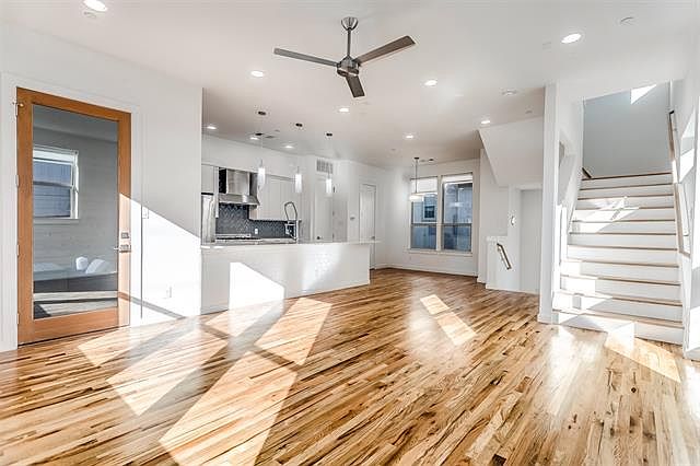 Modern design & exceptional downtown living, this 3-story, *END UNIT* townhome boasts an incredible floor plan and amazing features. Gorgeous wood floors carry throughout the open concept 2nd level into your DREAM kitchen featuring *HIGH END, CHEF QUALITY APPLIANCES*, premium quartz countertops, and designer fixtures. MUST SEE master bathroom with sprayer & rainfall dual head shower, large bathtub, and walk-in closet awaits on the 3rd floor. Outside, enjoy the covered balcony and private backyard with artificial turf - perfect for pets & entertaining. Experience the best of Lower Greenville & Knox-Henderson just steps from your new home! Bring your buyers today!