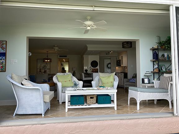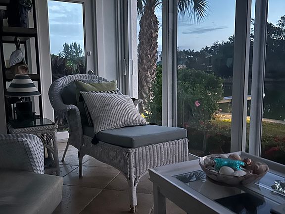 Imagine enjoying fabulous sunrises over Hurricane Harbor, in the prestigious southwestern Moorings area of Naples, from our full-sliding-glass-door lanai. Imagine walking just across the street to one of the best beaches in all of Florida. Walk down the beach to the newly built Naples Beach Club and Four Seasons Resort, or to 5th Avenue South and the City Pier in downtown Old Naples -- and invite your friends to truly awesome sunsets over the Gulf of Mexico! This sunny, ground-floor, turnkey-furnished, 1400 sq. ft. end-unit features chiseled-travertine stone flooring; classic crown moulding; thoroughly sound-proofed ceilings; an open floor plan; two LCD HD Smart TVs, an audio system, and WiFi; a dry bar; and remote-controlled shades in the lanai. The all-new kitchen has stainless steel appliances and beautiful granite countertops; contemporary white cabinets and corresponding subway wall tile -- and it's open to the living, dining, and lanai areas. The master bedroom has a premier, new, PranaSleep king-size bed; a large, walk-in closet; an all-new private bath with an upscale all-glass-and-tile shower; and one of the smart TVs. The guest bedroom has two twin beds and a separate, all-new bath with a soaking tub and shower. As a renter in the Ambassador Club, you'll have access to the Club's beautiful, heated pool; free laundry facilities; gourmet gas grill; rentable boat docks on the bay; parking for your guests; and wonderfully friendly owners and other renters. The dolphins you'll see in the bay (sometimes right at the docks) and all the shorebirds, such as Great Egrets, Ibises, and Tricolor Herons are included in the rent. The Unit is available March 14 and a 30-day-minimum stay is required by the Club.