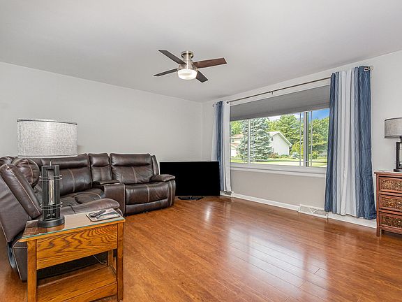 Beautiful! Nice looking and hard to find, this totally remodeled, nicely Landscaped 3-Bedroom, 2-Bathroom split-level Home on almost 1/2 an acre with a Huge Fenced Backyard is just what you are looking for! Tastefully painted thru out with white six-panel doors and trim in most rooms and newer luxury vinyl flooring on the main level and Family room with upgraded Ceiling Fans in all rooms. The Large Living room leads in to a Newly remodeled Kitchen with multiple 42"white cabinets with quartz countertops, ceramic tile backsplash, Stainless steel appliances, pantry, eating area and Crown molding with recessed ceiling lighting! The upper level has three bedrooms and a totally redone New Bathroom with new tub-surround, commode and vanity with granite top. The lower level has a Large Family room also with recessed lighting, and a 2nd remodeled Bathroom with a walk-in shower, and a multi-purpose Laundry Utility room with storage cabinets. On the other side of the kitchen and house is an attractive 2-1/2 Car 20x25 Ft. brightly-lite Garage that is deep enough for most pick ups but it is so nice that it almost doesn't feel like a garage and makes it perfect doubling up as a multi-use room! There is also a Newer garage door, multiple shelfing and a service door to the back yard. From the Kitchen there is a newer newer Sliding door leading to an entertaining size 15x28 Ft. Patio and a gorgeous privacy 400-Ft. Fenced-Back yard with a custom 16x12 shed and landscaping that makes you feel like you don't want to leave! Plainfield Schools and no-assoc. fees. Many Updates include: Cedar Fence 8/2018, Siding 11/2024, Driveway, sidewalk and stoop 4/2020, New Roof 8/2020, New Garage Door 9/2022, Insulation on two-attics 9/2022, New Furnace and A/C. 9/2022, Drywall & Insulation-Garage,10/2021, New Windows replaced 2017, Kitchen remodel 8/2022, Luxury Vinyl Flooring-main floor 8/2022, Upstairs Bathroom-total tear out & remodel 1/2024, Upstairs carpet 3/2024,Vinyl flooring lower level 8/2021, Kitchen Patio Door 5/2019, GE Washer and Dryer 2024. Conveniently located and only 5-minutes to the Louis Joliet Mall, shopping, restaurants, movie theatre, Bike and Pedestrian paths and access to Rt.30 and I-55. This is a 10+!