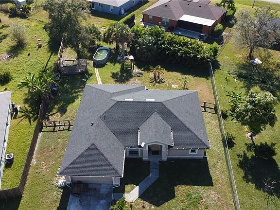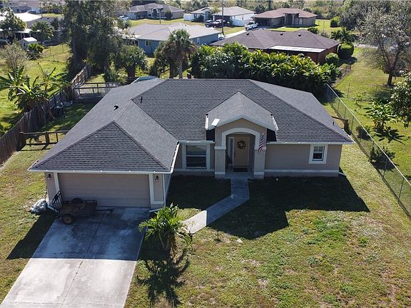 Super nice 3 bedroom, 2 Bath home with newer roof replaced in 2023. New Fence in 2023. Tile floors throughout. This home sits on .33 acres, not the smaller quarter acre lots. Above ground pool 18 X 10 size remains with the home in as is functional condition. Plenty of extra room in the yard to have sheds, green house or anything you would like. Super nice neighborhood with quick access to HWY 80 to commute to LaBelle, Fort Myers and I-75. Extra large rear patio 25 x 9 adds lots of space to enjoy the back yard. Water heater replaced in 2024, RO system added in kitchen 2023. Well pump, sulfur tank and pressure tank replaced 2025. Marble countertops in baths and kitchen area.