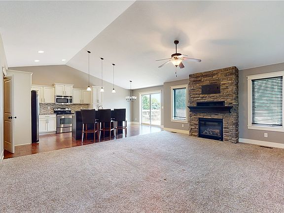 This is an adorable well maintained ranch style home with (over 2700 sq/ft total finish) a semi private feel back yard with no neighbors directly behind. This lovely home is located in a convenient location close to freeway access - as soon as the bridge is finished. The kitchen has beautiful cream cabinets offset by darker tiered kitchen island flattering finish of backsplash and stunning granite countertops. The trim through out the home is the beautiful cream trim and cream doors that lends calming feeling of coziness to the home. One of the rooms has charming French glass doors to allow light to flow in, can be used for an office/or 3rd bedroom on main floor. The bathrooms all boast lovely upgrades of the granite countertops and tile floors. The generous sized Master Suite has a bathroom with soaking tub /shower with lovely upgraded tile shower walls . Enormous finished basement feels like the main floor with the daylight windows allowing light to pour in. The LARGE basement family room has a gorgeous wet/bar. There is a 4th bedroom in basement along with full bath perfect for guests or additional family. There is a cute drop zone on entry from the garage with bench & lockers that also includes the laundry area for ease of entry. The Drive way faces south perfect for keeping clean in the winter months. There is tons of closet space and storage space throughout the home as well as the basement. The garage has a built in ramp for 0 entry access.