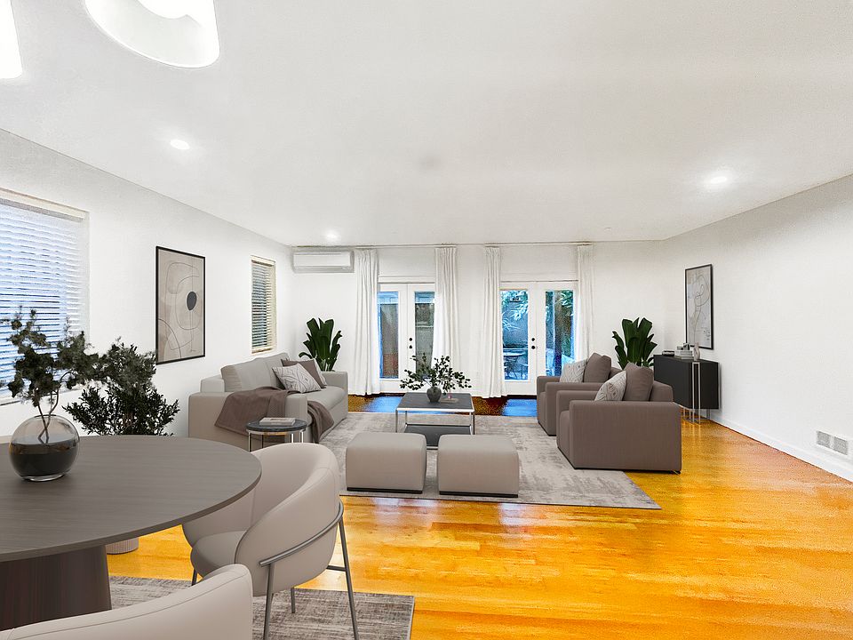 Convenient laundry roomLarge windowsHigh ceilingsModern kitchenHardwood floorsStainless steel appliancesPrivate patio