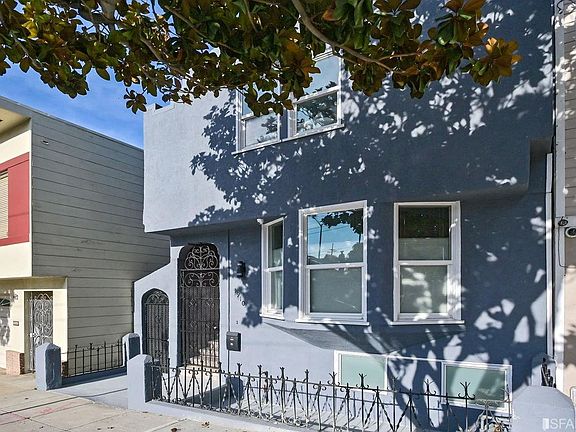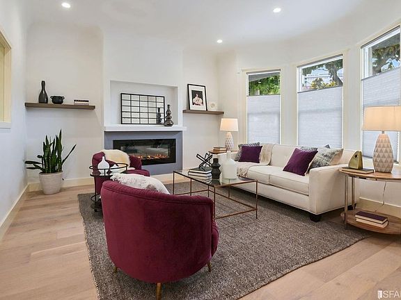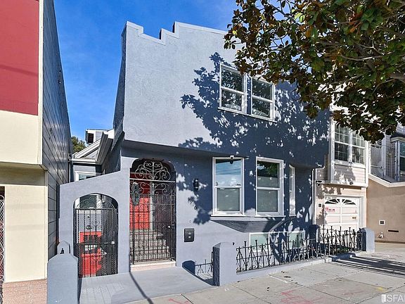 Spectacular, down-to-the-studs remodeled and expanded single family home in Silver Terrace. Five+ bedrooms, five bathrooms, and multiple flexible living spaces over three light and airy floors. Contemporary design behind a handsome Victorian facade, high ceilings, wide-plank white oak flooring throughout. Spectacular garden with mature palms. The main floor features a sizable living room with inset fireplace and bay window, open concept dining and chef's kitchen, full bath, and two bedrooms (one en-suite) that share a deck with bay views. The top floor features a large bedroom, separate office, full bath, and sitting room/den. The lowest floor, with its own separate entrance, features three more bedrooms (one-en-suite with standing shower and dual vanity), another full bath, plus another family room with inset fireplace and wet bar. Great closet space throughout. Laundry hook-ups on both the upper and lower levels. Exceptional remodel with incredible space, indoors and out!