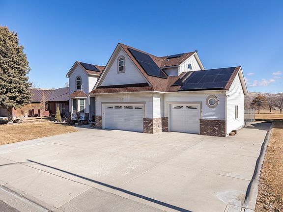 Located on the 2nd hole of the Ruby View Golf Course, this spacious home has it all! RV Parking! 3-Car garage! As you enter, you're greeted by the formal 2-story foyer. The main level of this home is perfect for entertaining with a formal living room that is open to a lovely formal dining room. The dining room has built-in cabinetry and offers access to the backyard. The custom kitchen includes chiseled-edge granite countertops, a gas cooktop, double ovens (including a convection oven), stainless steel appliances, pantry & more! There is also a prep/bar sink for added convenience! The entire back of the home has amazing views and several access points to the gorgeous backyard featuring a newer redwood deck (w/built-in bench seating), pristine florals & a large dog run. Upstairs, you'll find a large primary suite with its own private balcony, remodeled master bathroom with a jetted tub, tile shower w/dual shower & a massive walk-in closet! There are 3 additional bedrooms w/walk-in closets + 1 bathroom upstairs. The basement offers a Game Room, 2 large bedrooms + bathroom & cold storage/wine cellar. The home's solar panels cut your power bill to LESS THAN $20/month! Come see!
