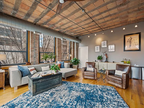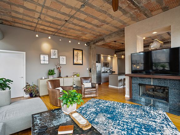 This exceptional northeast corner condominium is a luminous sanctuary, enveloped in natural light from 12 expansive windows that frame sweeping tree lined views of historic Indiana Avenue and the iconic city skyline. Featuring 10-foot terracotta ceilings, a double-sided fireplace, and a striking fusion of exposed brick and industrial ductwork, the space exudes both timeless elegance and urban sophistication. Two generously proportioned master suites offer serene retreats, each complemented by stone-appointed baths. The chef's kitchen, designed for both style and functionality, showcases 42-inch painted cherry wood cabinetry, granite countertops, stainless steel appliances, & a commanding 10-foot island. A private balcony to enhance the living experience, while indoor parking ensures convenience. A truly remarkable residence that defines urban sophistication. Parking included in price.