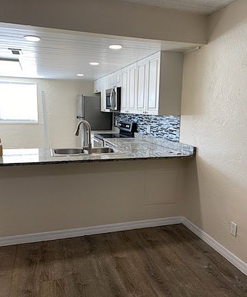 Completely remodeled huge 2 bedroom 2 full bathroom first floor corner apartment for rent. Right across the street from the Intracoastal Waterway! Amazing kitchen with granite countertops, stainless steel appliances, and glass tile backsplash! Freshly painted, including new bathroom vanity with granite. Upgrades galore! New owner plans on making this the nicest complex in South Daytona Beach! Walking distance to Riverfront Veterans Memorial Park right on the water including playground, pavilions, and a boat launching ramp. $1595 security deposit. Up to two approved pets allowed. 30 lb. limit. No administration fee! No section 8. Background check required.