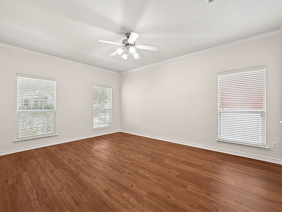 Gas log fireplaceDedicated officeCrown moldingPrivate master retreat
