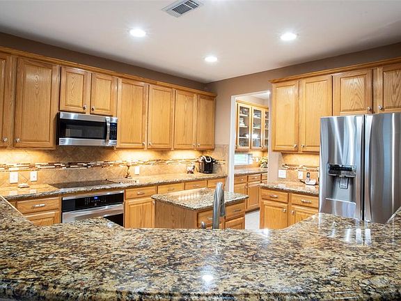 Welcome Home! This is a stunningly elegant 2001 Ryland Home. The home features a grand foyer with 20' ceilings, 4 large bedrooms 3.5 baths and a 3 car garage with a split and open living floor plan. The island kitchen is large with 42'' custom wood cabinets, beautiful sleek granite countertops and upgraded lighting throughout the entire home. The expansive 18'x16' living room has a full wall of windows that adds tons of natural lighting. The 18'x15' master suite is large with a beautiful master bath with his and her sinks and a large walk in closet. The large yard and beautiful 36'x18' backyard patio with pergola is perfect for those summertime BBQ's while relaxing with family and friends. Pecan Lakes subdivision has easy access to a all major HWY'S, shopping, and entertainment. Low 2.46 Percent tax rate! This energy efficient home with solar screens has been kept in immaculate condition and will rival any new home build! NO Flooding! This Neighborhood did not Flood!