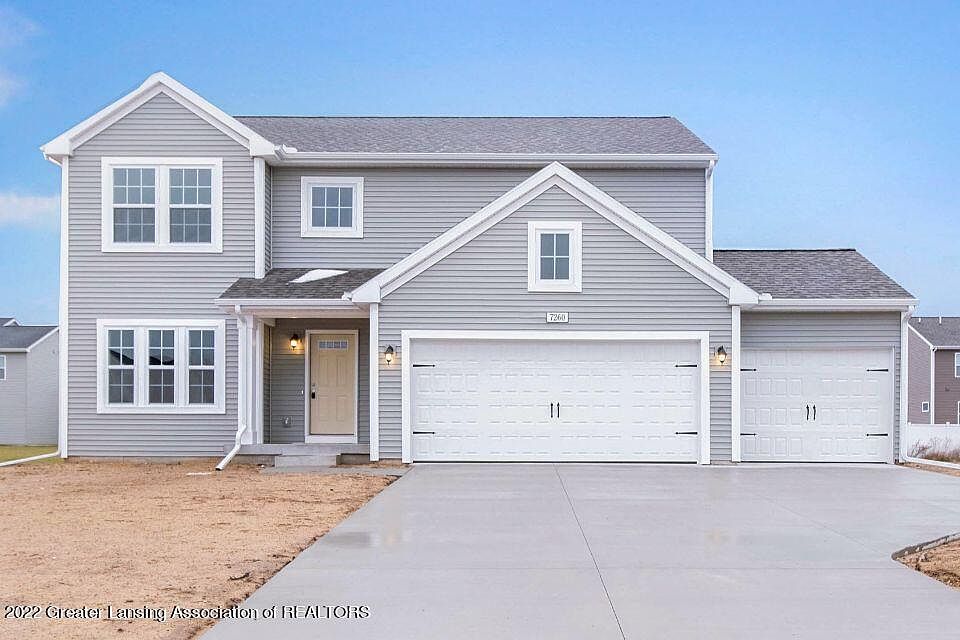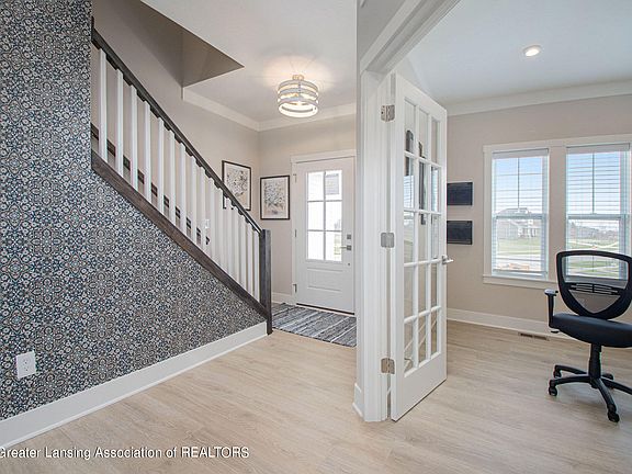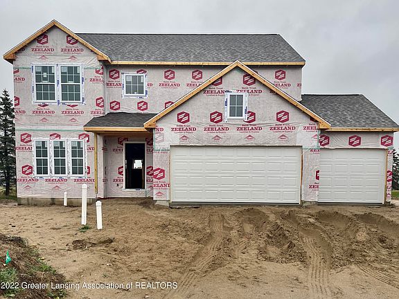New construction, 4 bed, 2.5 bath, 3 car garage home in Country Crossroads, located in the Eaton Rapids School District, community includes spacious lots and a country feel within easy reach of M-99, and I-96. RESNET ENERGY SMART NEW CONSTRUCTION-10 YEAR STRUCTURAL WARRANTY. Welcome home to over 2300 sq. ft. of open floor plan. The front entry greets guests and leads past a den, which will have french doors, and a powder bath, into a large great room, open to dining nook and kitchen. Kitchen will feature white castled cabinets, center island with pendant lighting, quartz counters and tile backsplash. The kitchen will also feature SS appliances; range, microhood, and dishwasher. Easily accessed from the kitchen are a large mudroom and separate walk in pantry. Gorgeous engineered hardwood floors on most of main level except den.