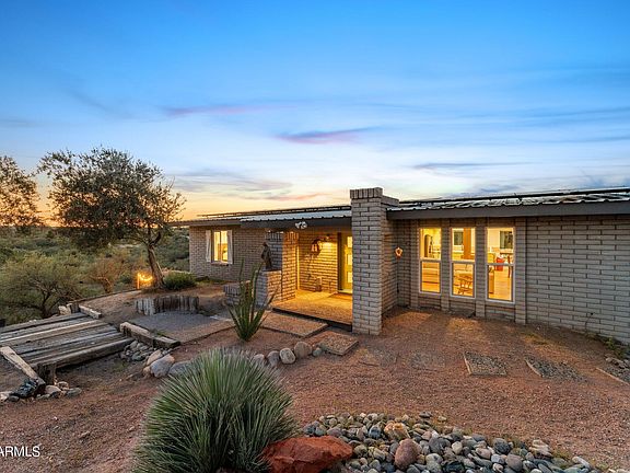 Built on an elevated site, this home has phenomenal views and room for your horse setup & arena. On just over 4 acres, there's room to spread out here and view it all from your balcony. The home is classically built with hardwood floors, 3 bedrooms, bathrooms, kitchen and living areas upstairs. The open floor plan offers views from nearly every room and extends to the balcony. Downstairs you'll find an office/den, large laundry room, bathroom, workshop area and access to the garage. There are existing goat & pig pens with shade, a chicken coop and chicken runs. Beyond these, there is a huge area of flat, usable land with room for your mare motel, turnouts and an arena. It's hard to find flat horse property in Wickenburg, but this property delivers! Make an appointment to see it today!