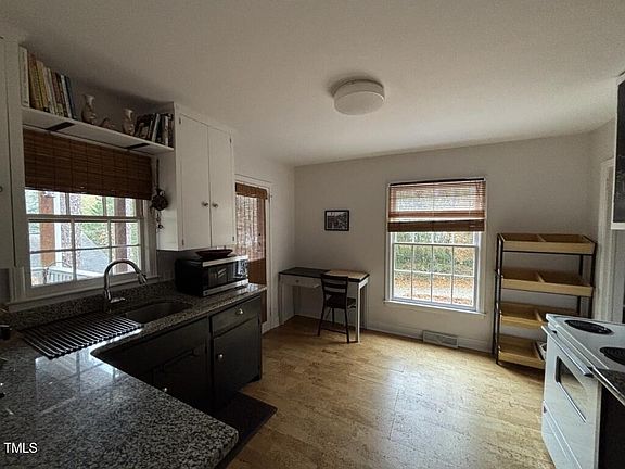 Charming 2 bedroom, 1 bath cottage in Lakewood, on a .25 acre lot. Features include hardwood floors, large windows, a modern kitchen with granite countertops and a spacious backyard with room for gardening or future development. Zoned RU-5 allowing for duplexes and ADUs, ideal for investors. Located near popular eateries, Duke, downtown Durham, and major highways, with easy access to rtp and rdu. Perfect for homebuyers or investors seeking potential in a vibrant neighborhood.