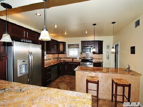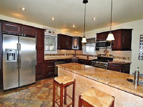 Large Detached 2 Family Colonial, Sits At A Corner On A Quiet Block With Modern Eik Kitchen, Granite Countertops, Stainless Steel Appliances, Breakfast Bar, Wood Burning Fireplace, Hardwood Floors, Finished Basement With Lots Of Storage, Large Yard. Close To Shopping, Buses To F Train And Lirr. Move Right In!