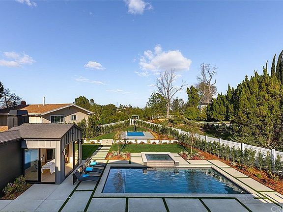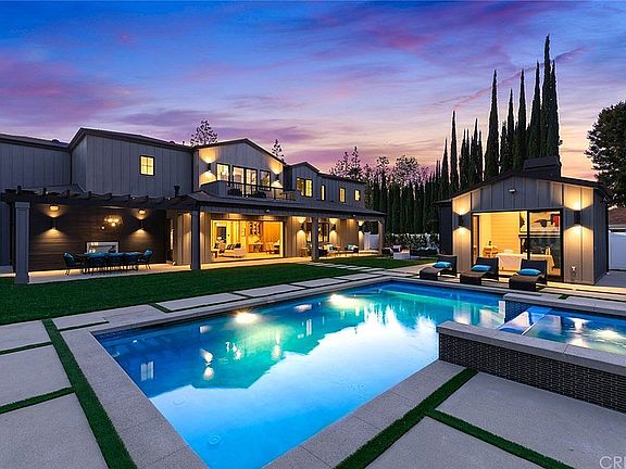 Spectacularly built brand new Tarzana residence located on massive grounds. This newly constructed farmhouse style home features meticulous attention to detail from the custom light fixtures to the wood slat art walls. This grand home will surely impress all who enter. With a seamlessly open floor plan and exceedingly high ceilings, the main level features a flawlessly appointed living room, dining room, home theater, office, guest quarter and chefs kitchen. The glamorous kitchen features top of the line Subzero and Wolf appliances as well as a butler's pantry. Additional features include two dishwashers, eight stove burners, a warming drawer, three ovens, and a center island- perfect for joining friends and family alike while preparing meals. Large sliding glass pocket doors lead you to the ultimate entertainers backyard dream. A stunning waterfall pool & spa are the focal point as the bbq area, fire pit, and sports court surround it. The pool cabana showcases unlike most, a bathroom with a shower, perfect for a quick rinse off after a dip in the pool. Upstairs guides you to the teen inspired loft- an ideal bonus entertainment hub. With optimum privacy in mind, all upstairs bedrooms present their own bathrooms. The grand master suite boasts a balcony overlooking the backyard oasis. The king sized bathroom captivates you with its double shower, free standing tub, and walk in closet with a substantial center island. Relax and enjoy your dream home.