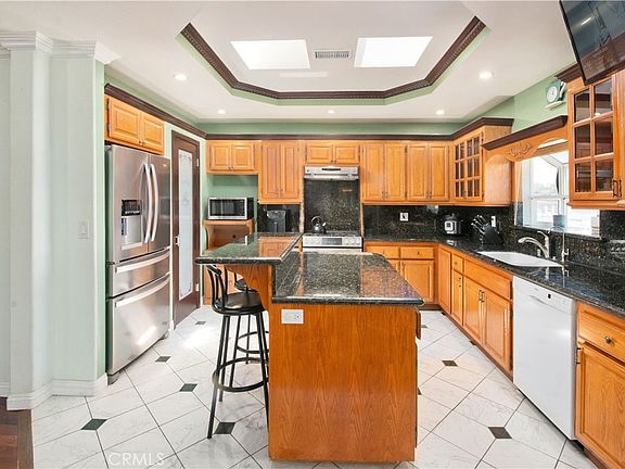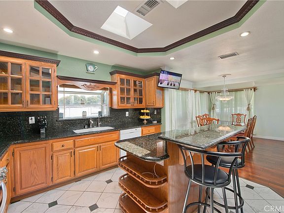 Welcome to this stunning and spacious 1-story home boasting an impressive 2,386 square feet of living space. Situated on a generous corner lot spanning 7,203 square feet this home offers ample space both inside and out. As you step inside you'll notice the beautifully updated kitchen with sky lights which serves as the heart of the home. Black granite counter-tops, wood cabinets, a stainless steel range & refrigerator & Bosch dishwasher. Beautiful breakfast bar and a walk-in pantry with an adjacent Dining Room the perfect combination for all of your Holiday dinners. A cozy Living Room perfect for quiet conversations. The huge Great room with a custom bar with silver drop lights is the perfect room to entertain. Sliders open up to a covered backyard patio, seamlessly blending the indoor and outdoor spaces. Whether you're hosting a barbeque or simply enjoying a quiet evening indoors, this covered patio provides the perfect setting. The home features four bedrooms offering plenty of room for family members and guests. The primary bedroom is a true retreat, with a walk-in closet & additional closet and complete with an en suite bathroom with double sink vanity with black granite counter-tops & wood cabinetry. Three remaining bedrooms and two additional bathrooms ensuring everyone's comfort and convenience. A two car garage providing ample space for parking and additional storage. Many upgrades including copper piping, double pane windows, newer roof, A/C & water heater & leased solar panels saving you money on your electric bill. One of the larger homes in this neighborhood! Turnkey! Move-right-in!