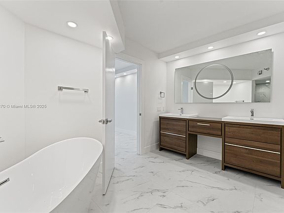 Luxurious and modern corner condo at Mystic Pointe with a spacious open floor plan, unique floor-to-ceiling IMPACT windows, and abundant natural light. This residence showcases top-of-the-line upgrades with porcelain tile throughout, a brand new open-concept kitchen designed with premium finishes, and new state-of-the-art appliances. The primary suite features an updated en-suite bath with dual vanities, antifog mirror, linear drain, and freestanding soaking tub. New washer and dryer. Designer style custom closets provide ample storage. Additional improvements include upgraded electric and plumbing. Community amenities include gym, tennis, pickleball, restaurant, marina, dog park, EV stations, and more. Close to houses of worship, beaches, Don Soffer Trail, Aventura Mall, and airports.