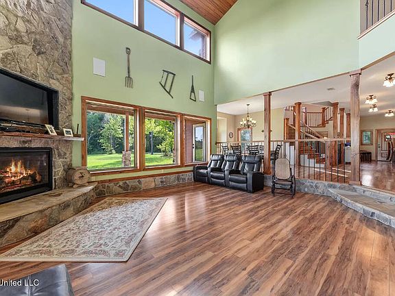 Large and prominent country home sitting in the middle of 5 acres of grassy meadowlands. (up to 40 acres available with home) At the end of a 1/4 mile road and hidden among mature trees on a long winding driveway. One large lake and 3 ponds around the property. Accented with beautiful rustic flagstone. This home features a large and usable outdoor entertainment area with a wrap around porch for viewing your property and a fire pit area. Watching games outdoors is comfortable in a shaded patio in the summer and heated indoor outdoor gas fireplace for winter games. The ''double kitchen'' is a chefs dream with all built ins, white cabinetry, stone surfaces, and tons of space. Kitchen boasts new stainless steel appliances. Microwave, ice maker, refrigerator, gas cooktop, dish washer. The extra large master bedroom is on the lower level with an enormous space, walk in closet, and master bath that includes double vanities, larger walk in tile shower, toilet, and soaking tub. A second very large master bedroom is upstairs with a total of 4 bedrooms upstairs. One is currently used as a game room or ''man cave''. A large landing at the top of the circular staircase is a perfect place for a workout area. The office area downstairs is right inside the door to the right with a half bath across the foyer. One of our favorite features is the sunken room outside the office for a great sitting area. The current resident paid over $11,000 to have a dedicated fibre optic internet line brought to the home! Currently they're getting 2GB download speeds online. Home comes with a large barn and metal roof with 4 horse stalls that have been plumbed with fresh water and roughed in electrical. The additional acreage available separately is fenced in with 8 separate cattle gates and was used for a small heard of cattle. Seller is motivated to sell but not desperate.