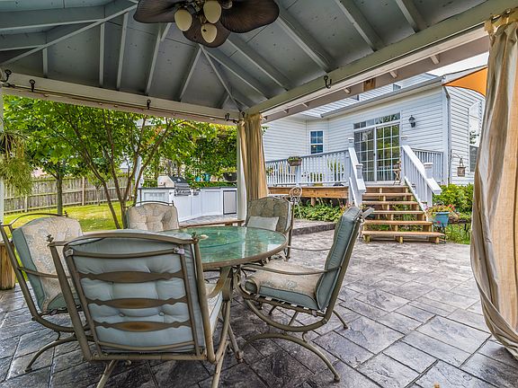 Gorgeous 4bd, 4.5ba stone front Colonial features wood floors, carpeting, crown molding, vaulted & tray ceilings, gourmet kitchen w/ granite countertops, master bedroom includes walk in closet, separate shower/soaking tub and vanity, entertainment room in basement features wetbar, sink and refrigerator. Beautifully landscaped exterior features covered patio gazebo and outdoor kitchen. MUST SEE!!