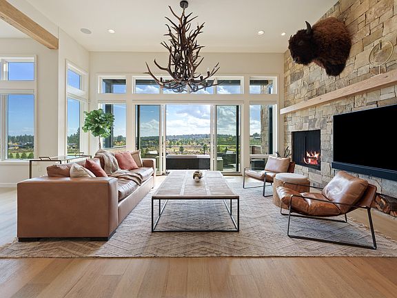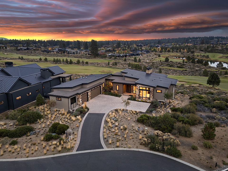 Located at the end of the cul-de-sac of the well sought after neighborhood, Tartan Druim & overlooking Tetherow's prestigious Kidd's Corner is where you will find this elegant custom home. This impressive, light-filled home captures the vast views from top to bottom. Graced w/high end finishes & fun touches, you'll find all the bells & whistles throughout this thoughtfully designed home. On the main level you'll find an airy primary suite w/a dual vanity, heated floors, & a roomy walk in closet, an open great room w/a striking wood burning fireplace, an entertainers kitchen w/top of the line appliances incl. a beverage fridge & built in coffee maker, a secondary en-suite, office, powder room, mud/laundry room, 3 car garage w/storage room, 2 balconies, & a built-in BBQ. The lower level features a bonus room w/a kitchenette, 2 bedrooms & bathrooms, a paver patio & grass area. Whether living here full time or part time, you'll rest easy w/the Lutron smart system. Why live anywhere else?