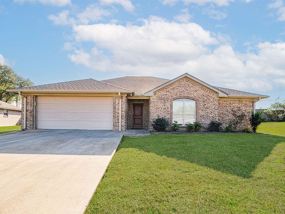 Beautiful, move in ready home located in Flint! This well maintained property features a desirable split bedroom floor plan and tile flooring throughout the main living areas, with carpeted bedrooms for comfort. The spacious living area flows seamlessly into the kitchen, which offers attractive cabinetry, counter space, and a convenient breakfast bar; ideal for everyday living and entertaining. Additional features include a wood privacy fence, sprinkler system, and security system. Situated in a great neighborhood with convenient access to Tyler ISD schools, shopping, dining, and major roadways. A must-see!