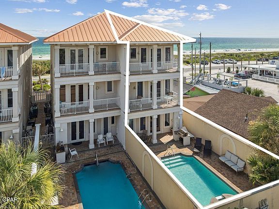 Enjoy preserved gulf views and the sound of waves from this five-bedroom townhome, perfectly positioned just steps from the beach. Spend your days on the sand or relaxing in the private courtyard, complete with a pool and spa. Open the doors to any of the four covered terraces, with two offering unobstructed views of the gulf, and soak in the fresh sea breeze.