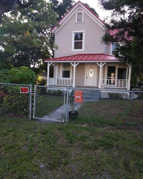 Adorable two story house in the City of Bradenton. Three bedrooms two baths with wood flooring, ceiling fans, french doors to the backyard. This home has a metal roof and tropical landscaping.