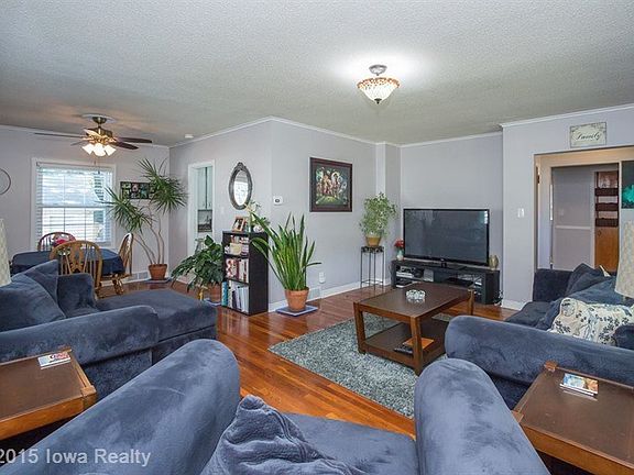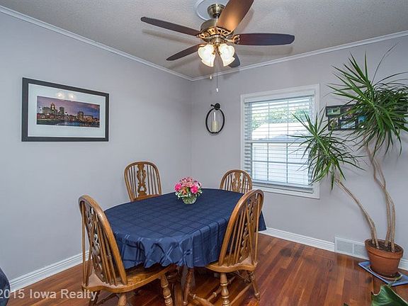 Sharp 2 Bedroom ranch in popular northwest area of Des Moines. Hardwood floors in living room and dining area and wood laminate in both bedrooms. The home has a newer roof in 2011, newer interior paint, large deck re-stained in 2014, and newer electrical box. Approx 981 sq.ft. up plus approx 400 sq.ft. in lower level. Newer vanity in bath. The home has vinyl siding for low maintenance and an over-sized 2 1/2 detached garage. Ceiling fans in both bedrooms, kitchen and dining area. The home has a lifetime waterproof guarantee for the basement.