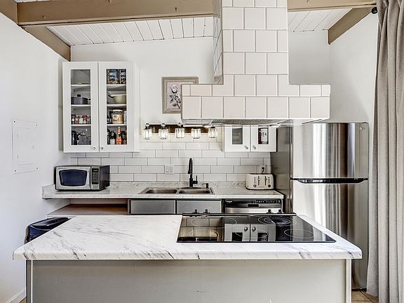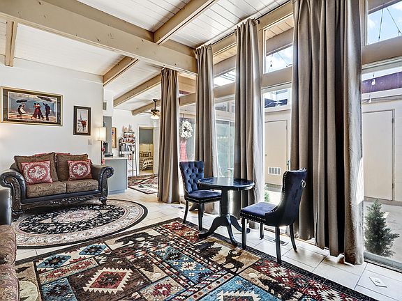 Natural light abounds in this beautifully updated & centrally located NE Albuquerque condo. The unique open floor plan stands out... feeling open & large... featuring high ceilings... situating the kitchen & living room surrounding the courtyard w/ multiple sliding doors visually & functionally integrates the spaces making it ideal for indoor/outdoor living. Stylishly updated tile on the floors, fireplace, and backsplashes. Remodeled bathroom is fresh and beautiful w/tile surround & vanity. Primary bedroom walk-in closet accent this great find. Courtyard closet is perfect for washer/dryer & additional storage. 2 dedicated parking & alley access. Centrally located to I40 with easy access to Uptown locations. This is a special property.