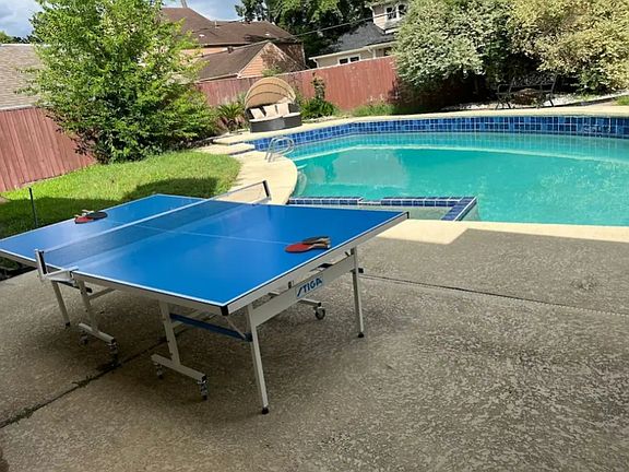 Outside, unwind in your private oasis, featuring a gorgeous pool, LED-lit garden, and a ping pong table for added fun. Whether you're relaxing by the pool or enjoying outdoor activities, this space offers it all. Plus, enjoy the convenience of an in-home washer and dryer.