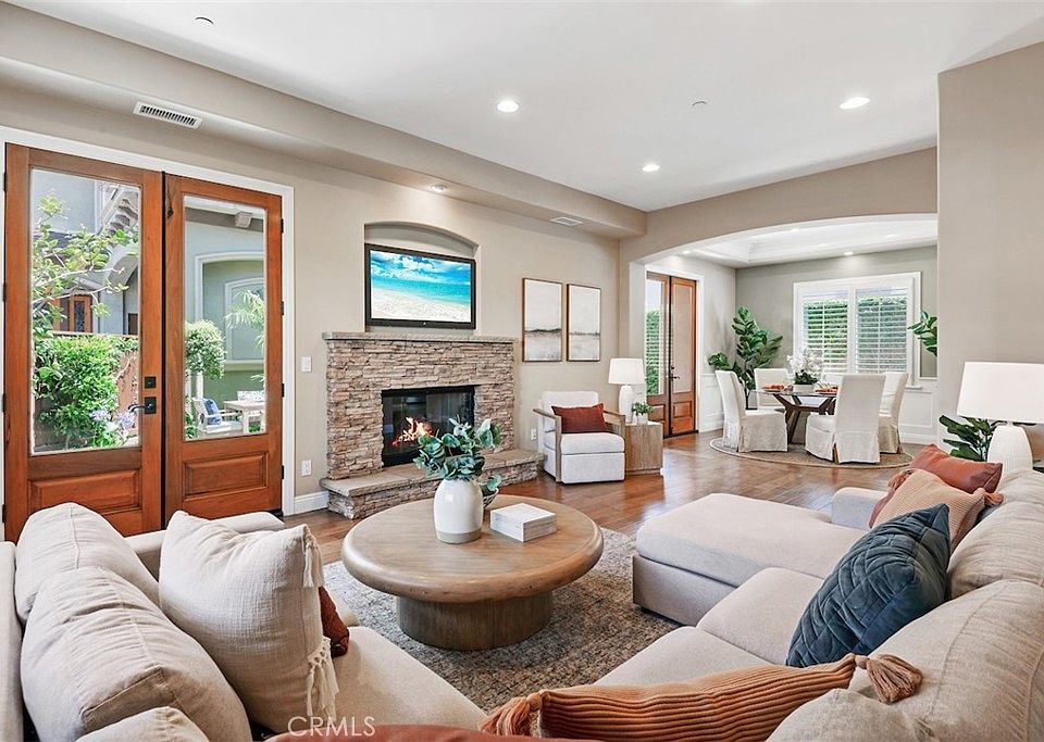 Move right into this fantastic, detached townhome. The open floorplan boasts high ceilings, hardwood floors and many custom details. The spacious living room provides the perfect place for daily living or entertaining on a grand scale. French doors lead to a private yard perfect for outdoor activity. There's a gorgeous kitchen with white cabinetry, stainless appliances, generous pantry and tons of counter space. A dramatic curved staircase leads to four bedrooms, including a primary suite with fireplace, large closet and large bath. Also upstairs is a family room that can serve many functions from watching TV, kids play area, study spot or home office. This home shows beautifully with new paint, refinished floors and plantation shutters throughout. The westerly location means high-end shops and restaurants are close by and the beach is just a short bike ride away. Let's not forget the award-winning schools available in Redondo Beach. This is everything you want: great condition, spacious floorplan, excellent location. Arrange a private showing today!