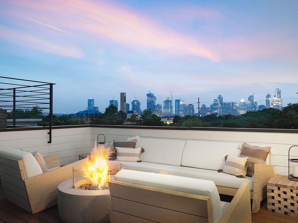 Experience Austin in this classy, modern East-side haven that captivates with its vibrant indoor-outdoor living spaces. The expansive open floor plan, characterized by clean lines and high ceilings, seamlessly connects to beautifully landscaped outdoor areas. Ascend to the remarkable 1,300 Square Feet rooftop living area, where you’ll enjoy breathtaking views of Austin’s skyline. With a built-in outdoor wet bar, island, private half bath, and fire feature this space is perfect for upscale entertaining under the stars. Inside, bathed in natural light, the gourmet kitchen shines with polished quartz surfaces and state-of-the-art chef-grade appliances, complemented by a walk-in pantry. This inviting space flows effortlessly into the living areas, perfect for both relaxation and entertaining. The spacious primary bedroom on the second floor offers an ensuite and walk-in closet, opening to a private deck with stunning Downtown views. Additional bedrooms provide ample space for guests or family, each thoughtfully designed for comfort and style. High-tech amenities enhance the experience throughout the home, including Lutron lighting, Somfy electric shades in every room, and a front entry video intercom. The property also features a 2-car garage with a Tesla wall charger, California closet systems, solar panels, a gas fireplace, Farrow & Ball wallpapers, and Ann Sachs tiles in each bathroom. Just minutes from Downtown and a short walk to Austin’s coolest bars and restaurants, such as Suarte, Canje, and Whistlers, this contemporary gem offers luxury living in an unparalleled location, where vibrant city life meets serene outdoor spaces.