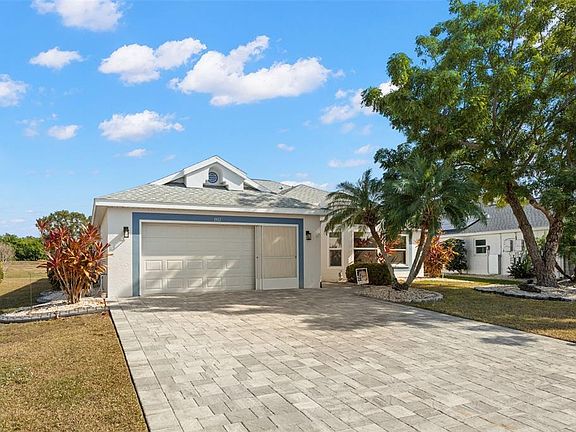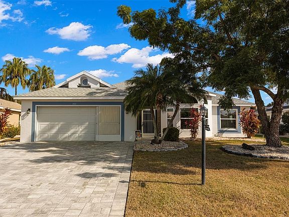 *Newer IMPACT RATED Windows and Doors *New Roof, Soffits, Facia, Gutters (2018) *New 4-Ton HVAC (2019) *New Electric Panel and AC Disconnect (2020) *New Plumbing (2016) *Bonus Room/Garage Door Addition (2018)* Discover a great opportunity located in the NUMBER 1 Rated Retirement Community in America! Caloosa Palms II in Sun City Center is a sought-after location that is PET FRIENDLY, has No CDD, No Flood Zone, and your grounds maintenance is included in the Low HOA fee. The private lot overlooks mature trees on this former golf course where you will enjoy nature including a variety of birds and other wildlife. This UNIQUE floor plan has 2-bedrooms, 2-bathrooms, an office with just under 2,100 sq ft of living space with the extended Bonus Room! Upon entering the home through the covered and screened breezeway, there is a GREAT ROOM with cathedral ceilings, wood like plank tile flooring throughout the main living spaces and room for oversized furniture. The dining room comes complete with a built in cabinet ideal to showcase your china! The kitchen is a chef’s dream, featuring UPGRADED raised panel wood cabinetry with CUSTOM crown molding and pot drawers. It boasts GRANITE countertops, a classic glass backsplash and high-end LG® black stainless appliances, including a convection oven and French door refrigerator! The eat-in space is nestled into the kitchen nook, which is great for quick meals, card games, and even a puzzle table! The Bonus Room is currently being used as a Man-Cave! This unique layout includes entry into the kitchen, lanai and yard and well as a functioning garage door! The flooring is removable or can be changed out to a neutral pattern to appeal to any aesthetic. This versatile room offers limitless opportunities, whether you're looking to expand your living area, establish a workspace with a separate entrance, or pursue an activity that meets your needs. The screened and covered lanai is an ideal spot to enjoy your morning coffee with no immediate backyard neighbors. Concrete curbing and the paved patio are additional UPDATES that add to your outdoor living space! Back inside, the primary bedroom is located in the rear of the home and is large enough to accommodate KING sized furniture without crowding. An oversized window anchors the lounge space and provides loads of natural lighting. The en-suite UPDATES include Quartz countertops, dual sinks, a feature wall adorned with newer mirror and lights, and a walk-in shower with floor to ceiling tile with listello banding, shampoo niche and a rain shower head with removable wand! The walk-in closet can be accessed from the bedroom or the bathroom and provides plenty of storage space. The second bedroom is also very generous in size, has two windows for natural light and quick access to the second bathroom! The office can provide dual functionality, if necessary, which includes a potential third sleeping area, and features a charming bay window. The laundry room is INSIDE, has cabinetry storage and a utility sink. This MOVE-IN READY home is located in a GOLF CART FRIENDLY community with activities to suit virtually every interest! The amenities include community pools (indoor & outdoor), fitness, shuffleboard, softball, lawn bowling, pickleball, lapidary, art and more! Most other needs are a golf cart drive away including grocery shopping, salons, banks, Veterans support, a hospital Tampa International Airport, close to Sarasota shops & 20 minutes to Ellenton Prime Outlets!