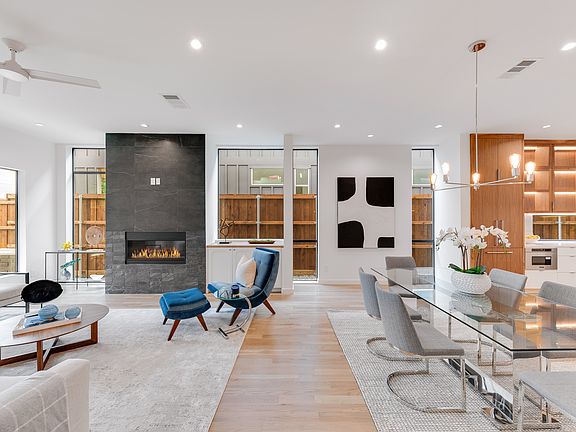 Fairmont Homes presents this luxurious single-family attached home, complete with a Pool, conveniently located within walking distance of the vibrant Knox-Henderson and Lower Greenville areas, known for their excellent restaurants and shops. This impeccably designed residence boasts finely crafted construction, an open floor plan, high-end modern finishes, and smooth finish walls throughout. The stunning kitchen is a chef's dream, featuring custom LED-backlit cabinetry, stainless Dacor appliances with gas range, and quartz and marble countertops. The expansive master retreat offers a spa-like bath and a custom-finished walk-in closet. Enjoy the elegance of white oak hardwood flooring and the warmth of a linear gas fireplace. Perfect for entertaining, this home includes a large covered patio and an outdoor kitchen overlooking the private pool. Additional quality features include foam insulation, a tankless water heater, a fully secure gate with combo entry, and a Ring doorbell camera.