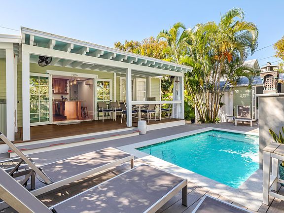 Welcome to 1911 Fogarty Avenue -- a beautifully updated Key West bungalow that masterfully blends historic island character with modern-day comfort. This 2-bedroom, 2-bath home is full of classic Key West craftsmanship, featuring original Dade County pine throughout and gracefully arched cove ceilings that bring warmth and elegance to every room.The remodeled kitchen is a chef's delight with custom cabinetry, granite countertops, stainless steel appliances, and stylish finishes that echo the home's vintage soul. French doors open from the kitchen inviting the outside in. Both bathrooms have been tastefully updated with clean, coastal design and high-quality fixtures.Step outside into your own private tropical sanctuary. The fully fenced backyard features lush landscaping, a spacious sun TREK deck, and a sparkling heated saltwater pool with a tranquil water feature. Entertain in style with a built-in outdoor kitchen and unwind under the palms with an outdoor shower -- perfect after a dip in the pool or a day at the beach. A separate pool house offers additional flexible space for guests, a home office, art studio, or personal retreat.Additional features include off-street parking, a den/study, and plenty of room for lounging, dining, or simply enjoying the laid-back Key West lifestyle.Centrally located in a quiet, established neighborhood, this home is just minutes from Old Town, beaches, local shops and restaurants. A rare and move-in ready slice of Key West living is waiting for you at 1911 Fogarty Avenue -- don't miss it!