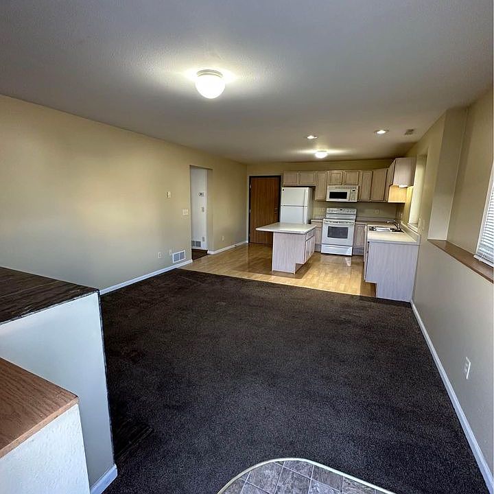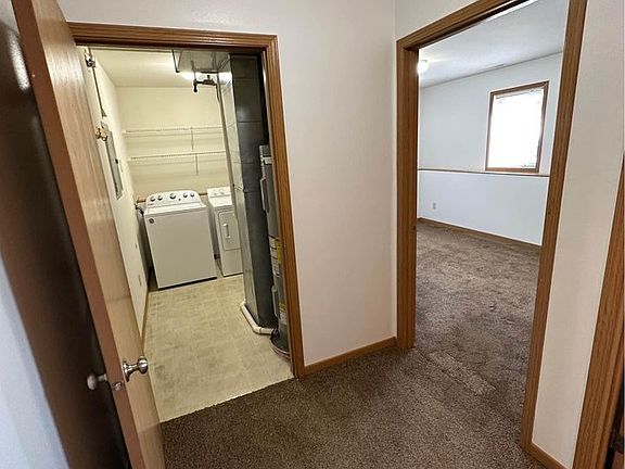 Kitchen has a center island, above range microwave, self cleaning electric range and dishwasher. Living room has a private door to the outside ramp. Two large bedrooms and handicap step in shower in the bathroom. This apartment also has it's own clothes washer and dryer in unit - not shared or coin operated. This building has soft water supplied. A garage is a available for $50 more per month. Each apartment has it's own gas furnace, central air and water heater.