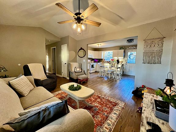Charming Ranch on Half an Acre! This beautifully updated single-level home is move-in ready and waiting for you! Featuring an inviting open-concept design, the spacious living room boasts soaring cathedral ceilings, seamlessly flowing into the stylish kitchen with modern cabinets and upgraded countertops. The primary suite offers a private en-suite bathroom, providing the comfort and seclusion you deserve. Two additional bedrooms and a full guest bathroom complete the interior.