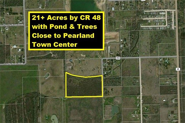 21.4 Acres w/Pond Off CR 48 by TX-288 & BW-8. Country Living Minutes to Pearland Town Center, 3 Community Colleges, 2 Master Planned Communities, 2 Hospitals & Wake Nation. Rapidly Growing Area! No HOA Fees! LOW TAXES! Private/Secluded! Hunting Allowed on Own Property! Has Well! Outside City Limits! Dead-End Road! No Thru Traffic! Quiet! Peaceful! Clear Skies w/Twinkling Stars & Fresh Air! ~4 miles to TX-288, FM 521 & Beltway 8. ~17 miles to Downtown Houston, TX Medical Center & Hobby Airport!
