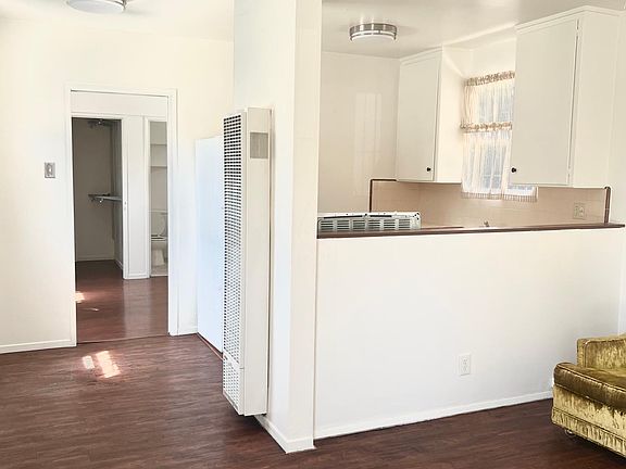 At just 675 sq ft, it features laminate wood flooring throughout, with some imperfections, an 8X8 bedroom, and walk-in closet. Comes with ceiling fan, AC, common grass and rock landscaping, and on-site parking for a single vehicle.