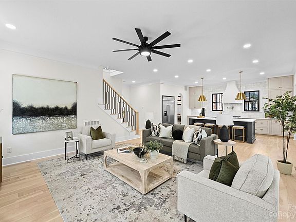 Welcome to Dilworth and this beautiful 2 story transitional modern, footsteps from Freedom Park. This new construction gem of nearly 3700sf features 5 bedrooms/ 4 full baths. The open concept floor plan with chef inspired kitchen includes a scullery, oversized island, butler pantry with wine fridge, quartz countertops & tile backsplash as well as professional grade appliances. The 1st floor rounds out with a formal dining area, private office, and main level guest suite w/full bath. The sliding glass door leads to covered and screened 3 season porch with tongue and groove ceiling, fireplace, and view over the fenced backyard—perfect to enjoy those Carolina nights. The second level consists of 4 bedrooms and 3 full baths, the laundry room and great light throughout. Don’t miss the one of a kind primary suite bath with expansive wet room and custom closet. An amazing opportunity to live in the heart of the city and enjoy the live, work, play lifestyle just minutes from everything.