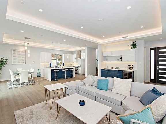 1911 Marshallfield Ln, welcomes you to a remarkably crafted 2,594 sq ft townhome! Enter the house to find the living room with a custom fireplace, its own sound system and a wet bar. In the kitchen you’ll enjoy a large center island, a Viking range and dishwasher, built-in microwave, under cabinet lighting, and a pantry with a barn door opening. Outside the sliding doors is a private backyard. As you make upstairs you will find a den and four bedrooms, highlighted by the primary bedroom, which features: high ceilings; remote-controlled fireplace; walk-in closet; and an exquisite bathroom with a freestanding tub. The two-car garage is coated with epoxy floors and has direct access to the living room and kitchen. Other features of the house include LED light and high ceilings throughout, solar panels; pre-wiring for security alarms, cameras, car charger plug; center vacuum. Lastly, the property is well located to the beach, major streets, parks (Perry Park), and schools (Jefferson Elementary).