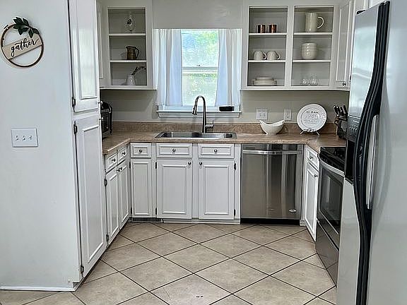 - RoomKitchenFeatures: Eat-in Kitchen, Bay Window, Counter Tops-Formica, Floors-Tile, Cabinets-Painted