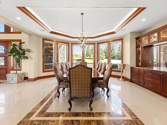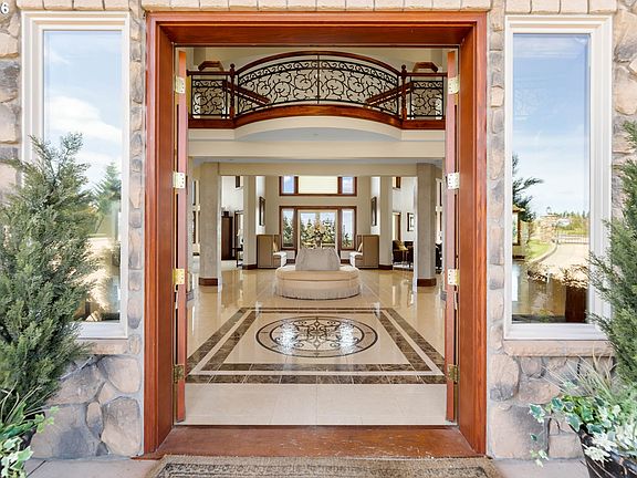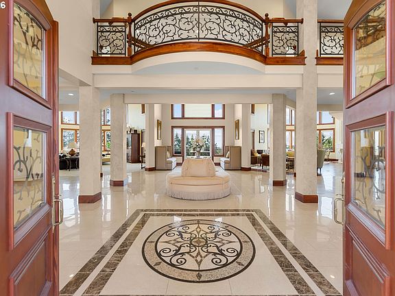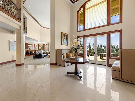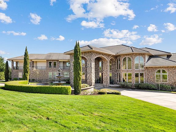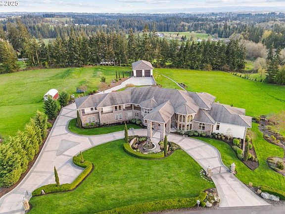 Embrace a laid-back, rural lifestyle with all the modern comforts in Ridgefield, Washington at this one of a kind PNW custom estate nestled in the Rolling Hills. There is NOTHING like this on the market. This gated private estate on 5 acres is an unbelievable custom home with just over 12,000 sq ft. of indoor living space, 6 bedrooms with ensuite full baths; 11 bathrooms in total. Congregate in the chef's kitchen and great room, where a wall of windows frames gorgeous views. Inside and out, this estate is all about its stunning setting. The kitchen with double ovens, induction cooktop and warming drawers, that opens to the spacious family room with expansive ceilings and windows to watch the sun set. You can gaze across the valley from Washington into Oregon's hills from your large terrace and infinity pool. Primary suite is located on the main floor with a gorgeous heated marble bathroom floor and private deck. Estate includes secret rooms, 4000 bottle wine cellar, full bar with kegerator, movie theatre, and playroom. The outdoor entertaining area is designed for a party. The four-season, enclosed patio has a full kitchen with a cooktop, pizza oven, and grill. It's the perfect spot in any season. Throw open the doors to the pool area or cozy around the fireplace in cooler weather. 45 x 25 Infinity pool with diving board, slide, hot tub, and splash pad for the kids to play. Pool house, with 5 garage door windows, so you can enjoy the summers while you BBQ in the full kitchen with a gas grill, Evo cooktop, pizza oven and fireplace. 40 x 60 detached RV garage to house all your toys with full heated bathroom. This impressive estate has delights for all ages.